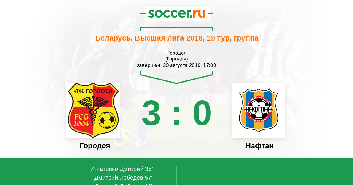 Протокол матча Городея против Нафтан
