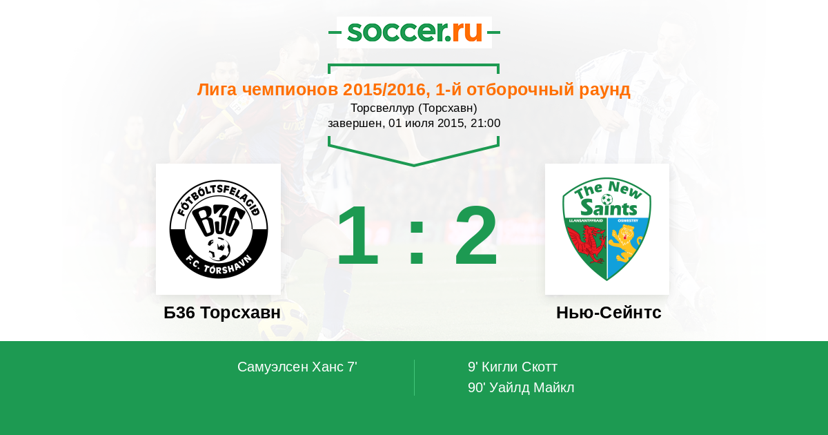 Протокол матча Б36 Торсхавн против Нью-Сейнтс