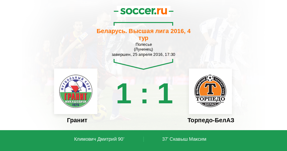 Протокол матча Гранит против Торпедо-БелАЗ