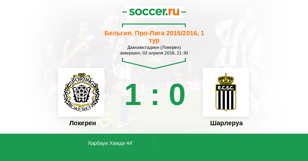 Протокол матча Локерен против Шарлеруа