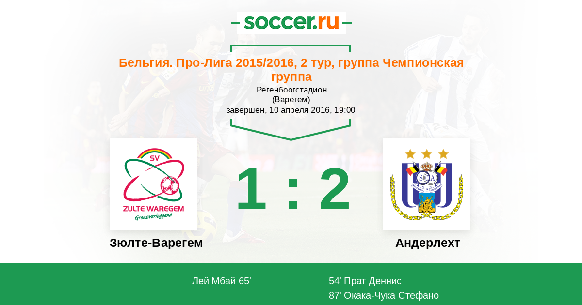 Протокол матча Зюлте-Варегем против Андерлехт