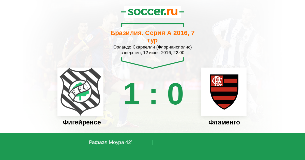 42' (1:0) Рафаэл Моура (9) (Карлос Альберто (19))