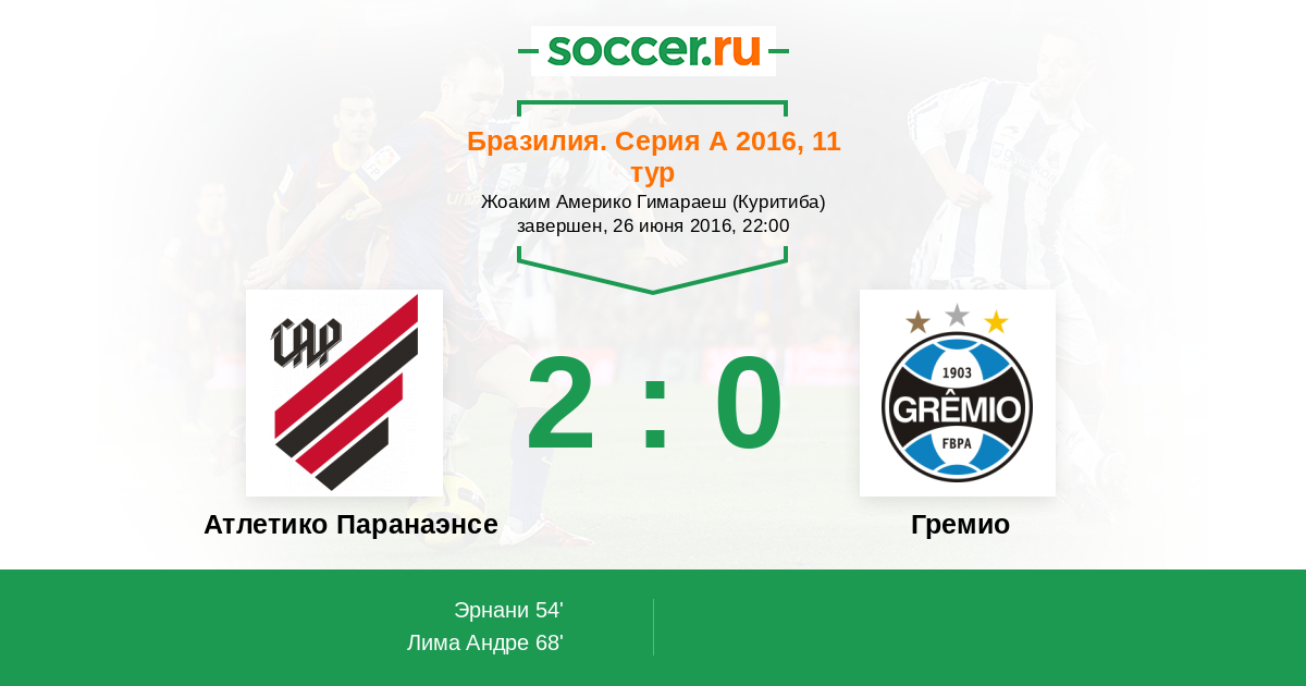 54' (1:0) Эрнани (23) (Лима Андре (99))