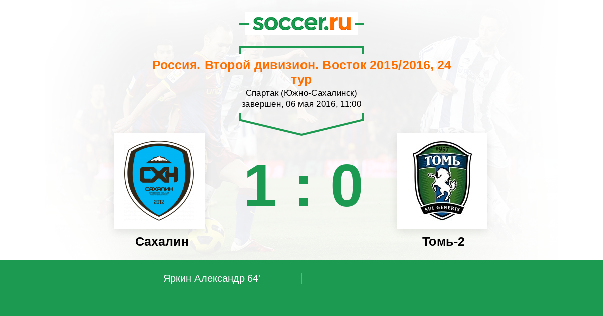 Протокол матча Сахалин против Томь-2