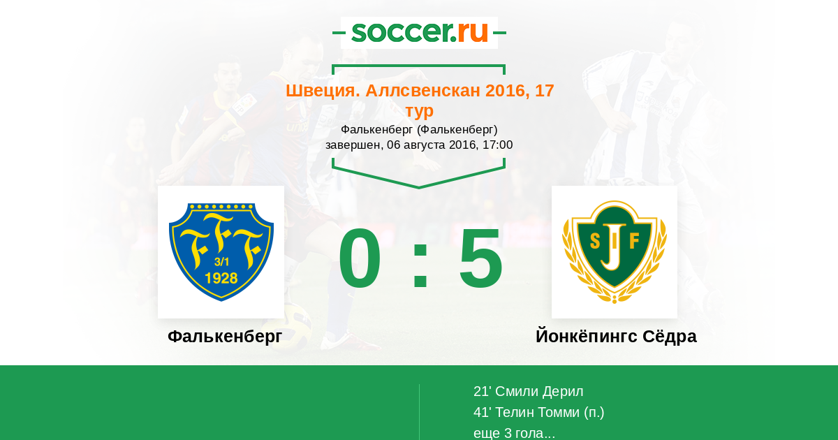 Протокол матча Фалькенберг против Йонкёпингс Сёдра