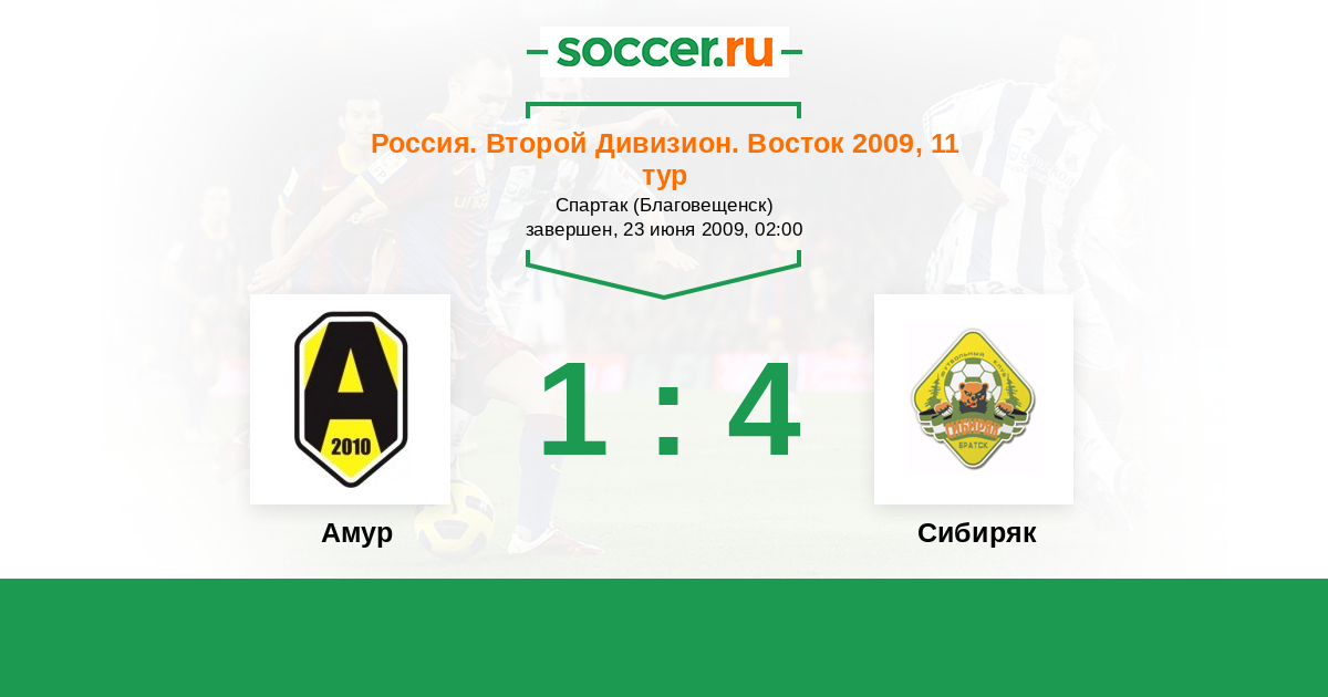 Россия. 2-й дивизион. Восток 07.05.2009 Сибиряк Логотип футбольный клуб Сибиряк (Братск) 3:2 Логотип футбольный клуб Амур  (Благовещенск) Амур
