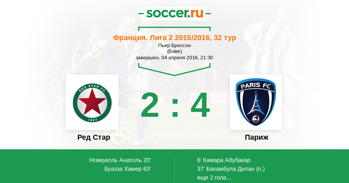 Протокол матча Ред Стар против Париж