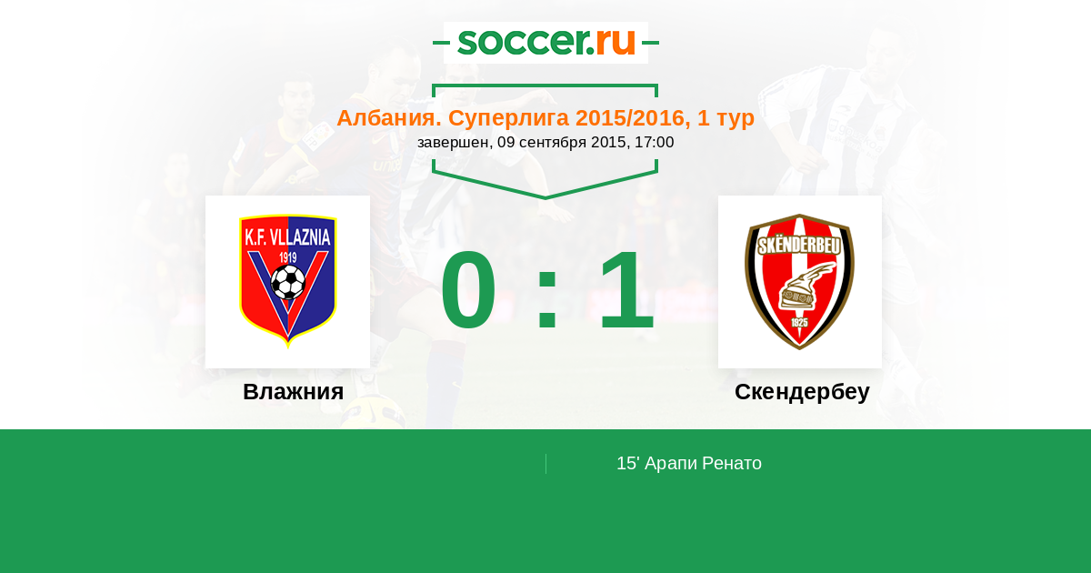 Протокол матча Влажния против Скендербеу