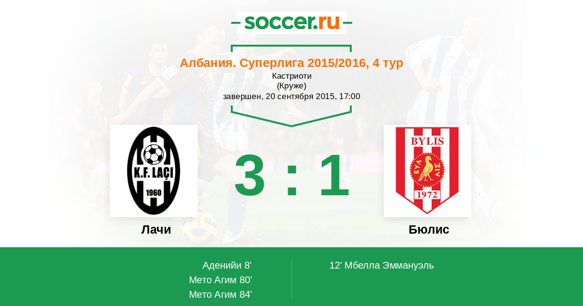 Протокол матча Лачи против Бюлис
