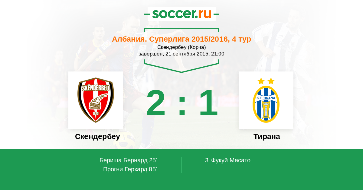 Протокол матча Скендербеу против Тирана