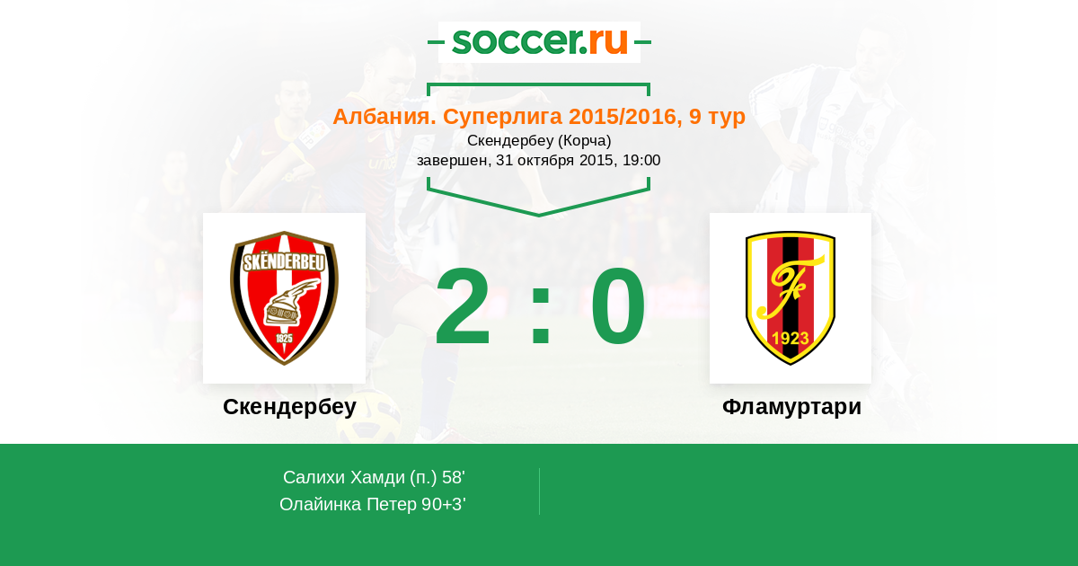 Протокол матча Скендербеу против Фламуртари