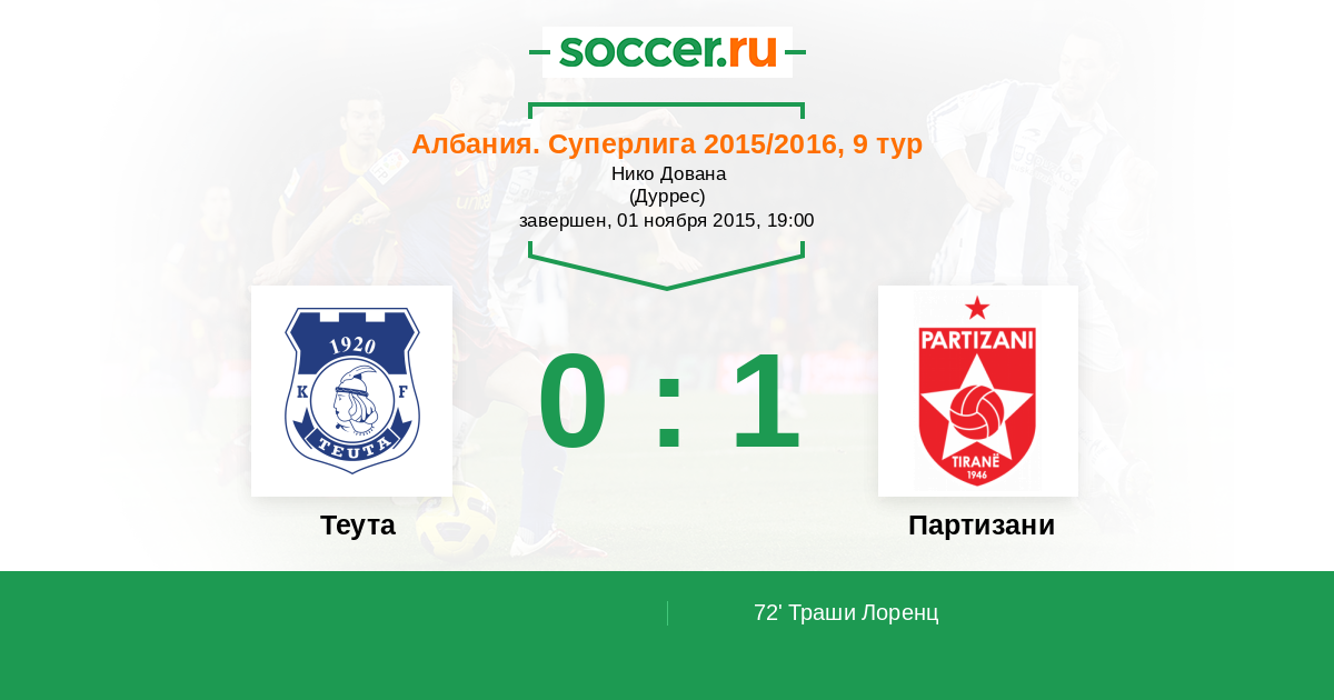 Протокол матча Теута против Партизани