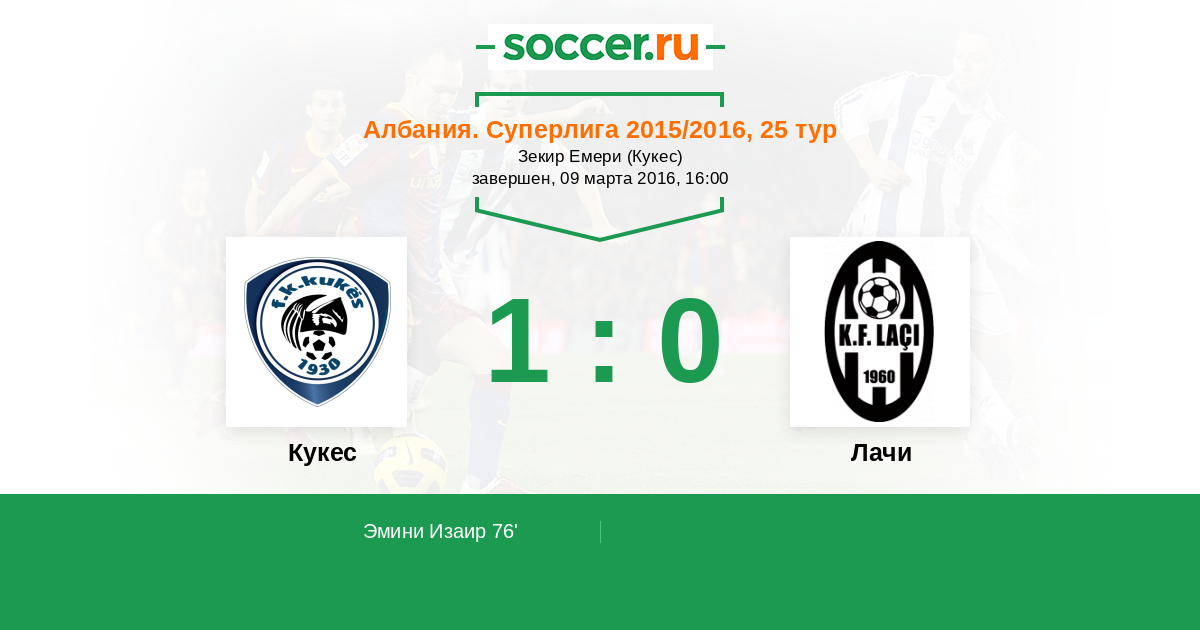 Протокол матча Кукес против Лачи
