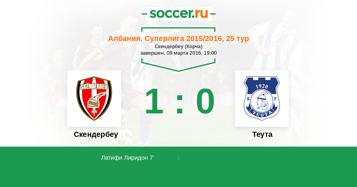 Протокол матча Скендербеу против Теута