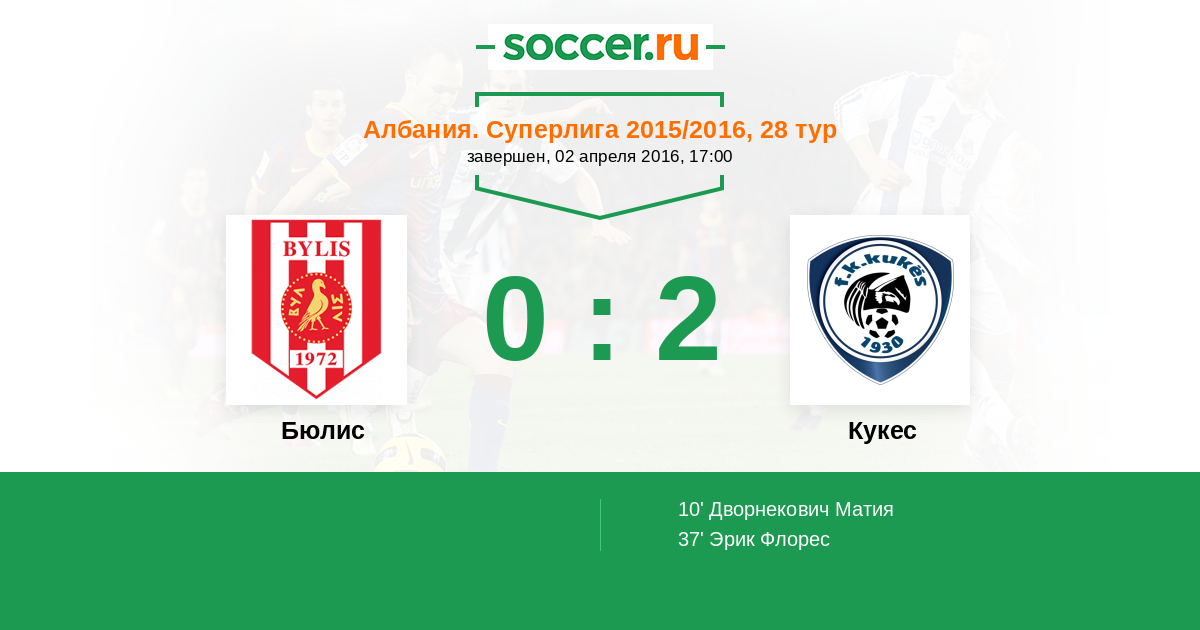 Протокол матча Бюлис против Кукес