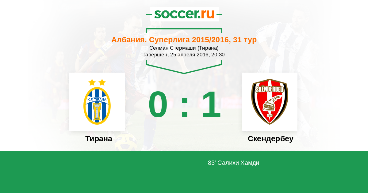 Протокол матча Тирана против Скендербеу
