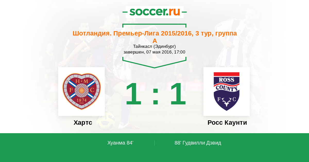 Протокол матча Хартс против Росс Каунти