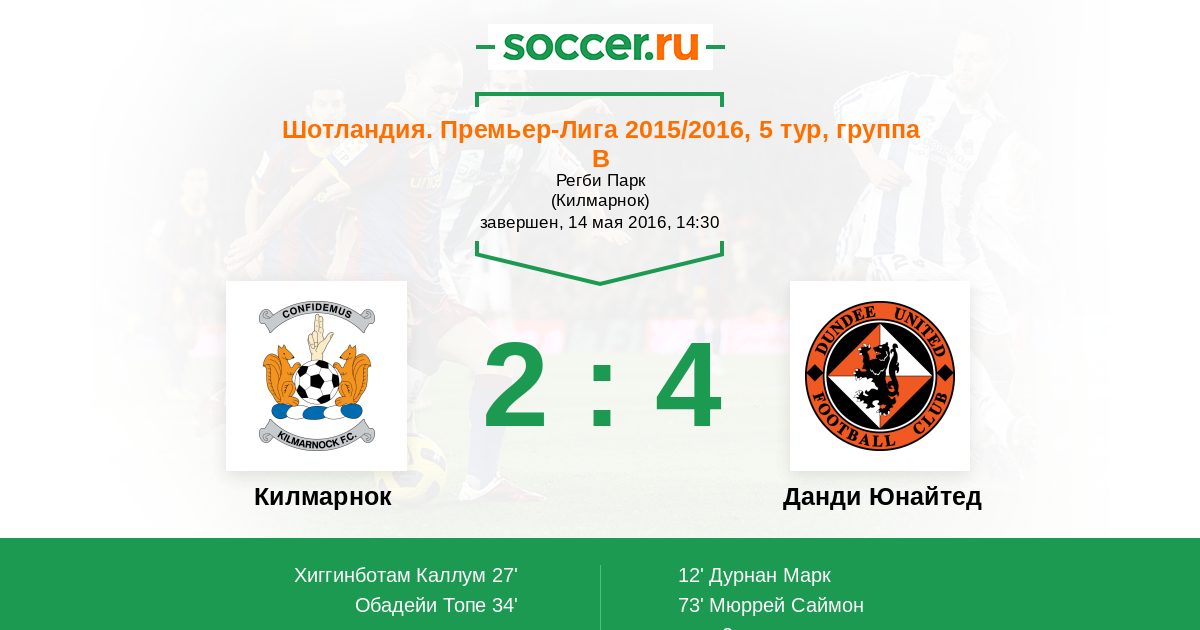 Протокол матча Килмарнок против Данди Юнайтед