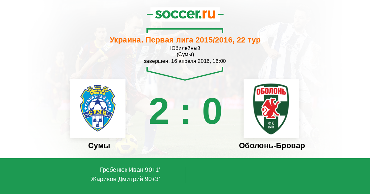 Протокол матча Сумы против Оболонь-Бровар