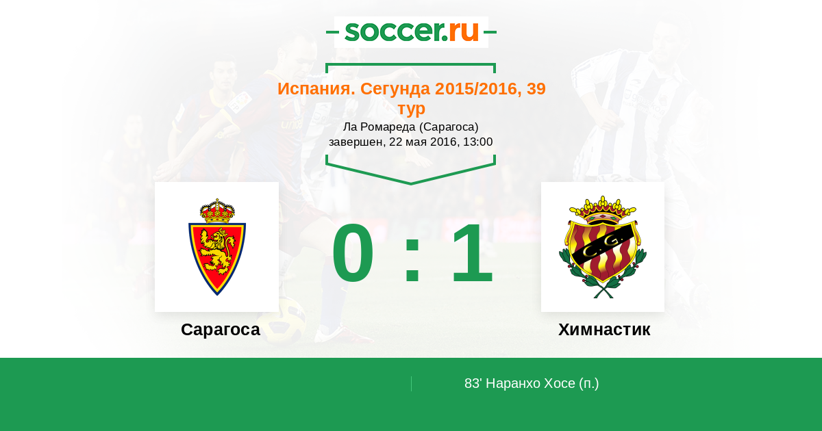 Протокол матча Сарагоса против Химнастик