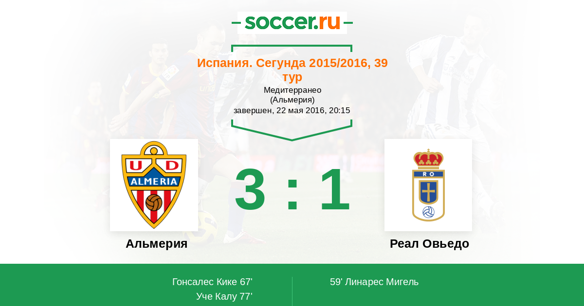 Протокол матча Альмерия против Реал Овьедо