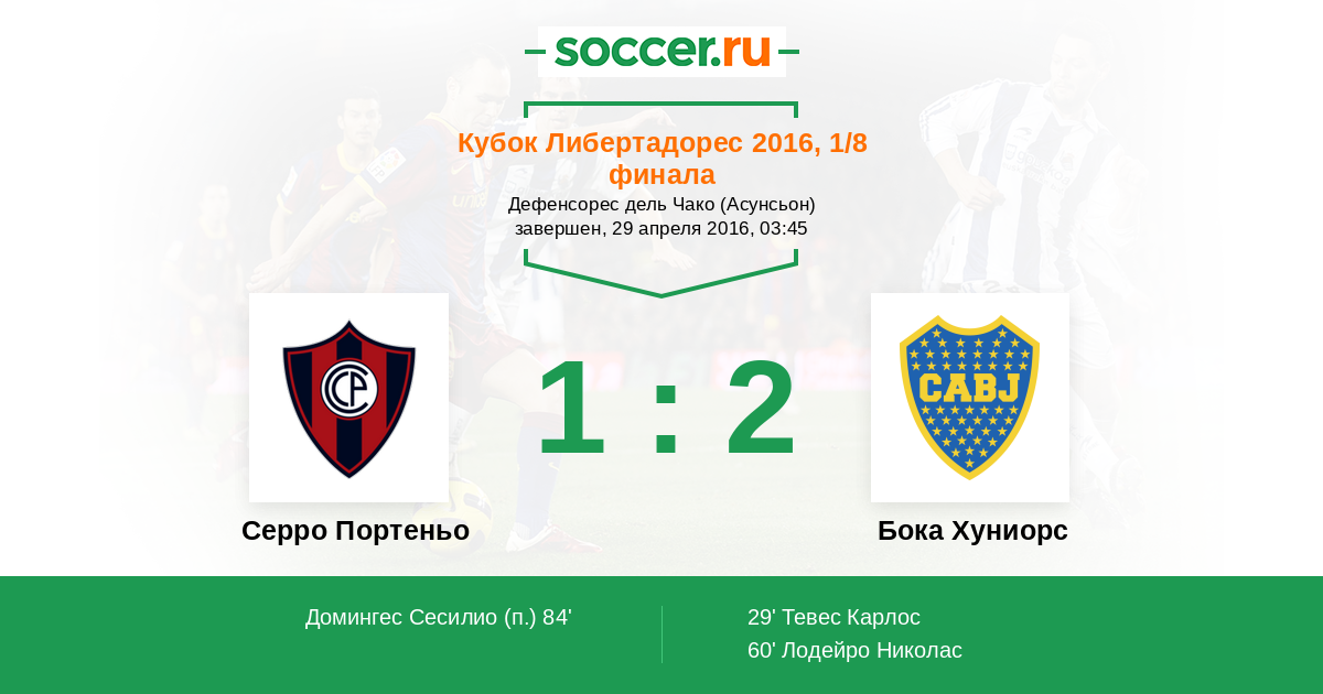 Протокол матча Серро Портеньо против Бока Хуниорс