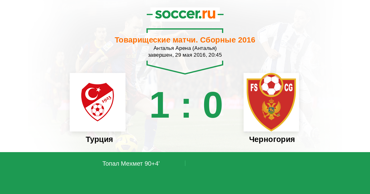 Протокол матча Турция против Черногория