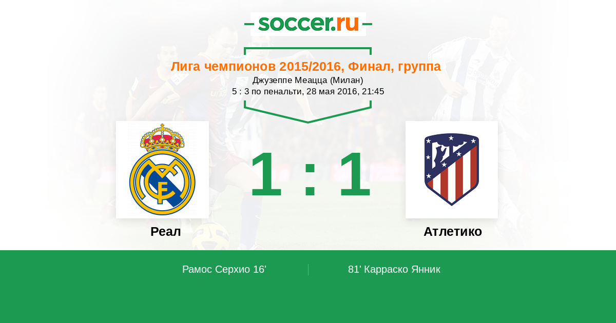16' (1:0) Рамос Серхио (4) (Бэйл Гарет (11))