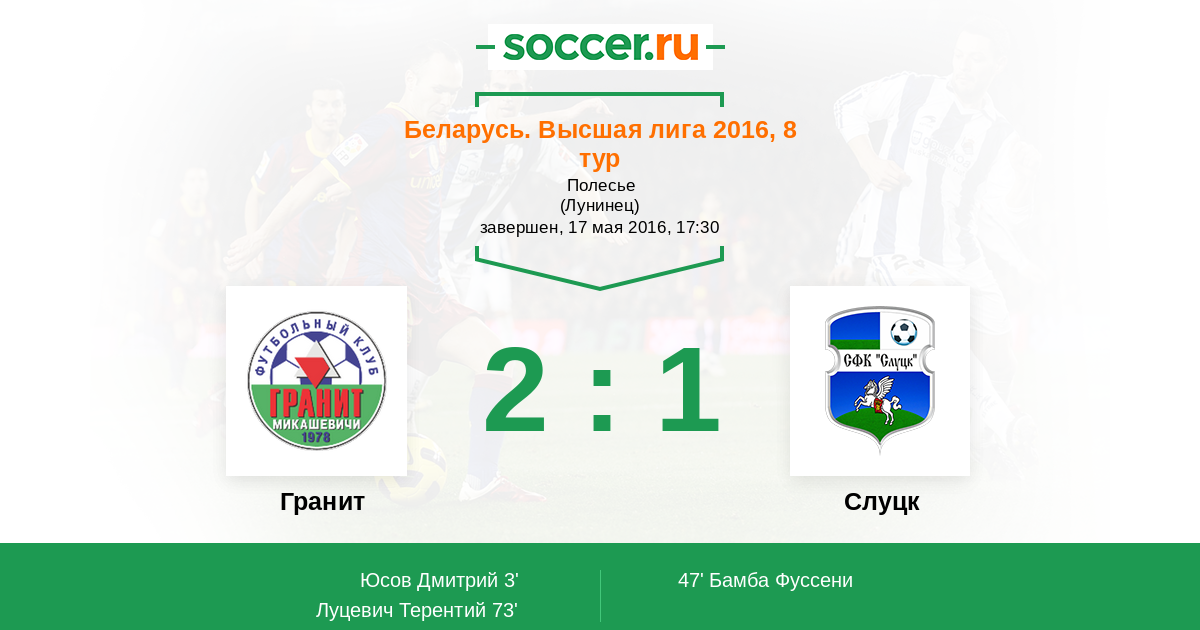 Протокол матча Гранит против Слуцк