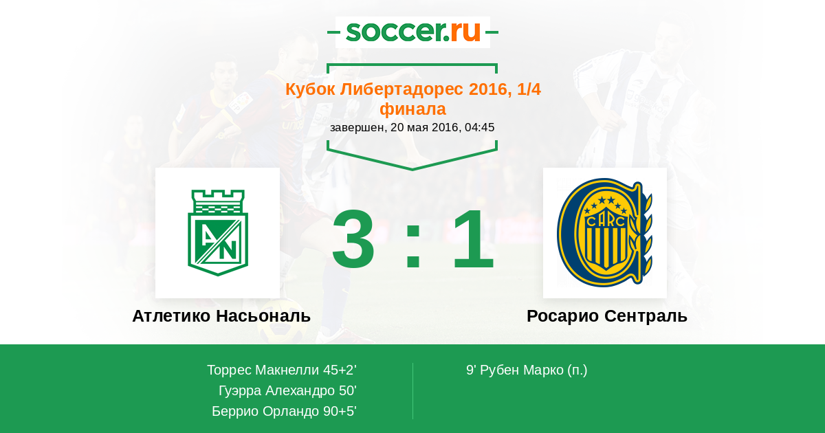 Протокол матча Атлетико Насьональ против Росарио Сентраль