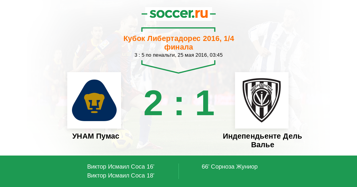 Протокол матча УНАМ Пумас против Индепендьенте Дель Валье