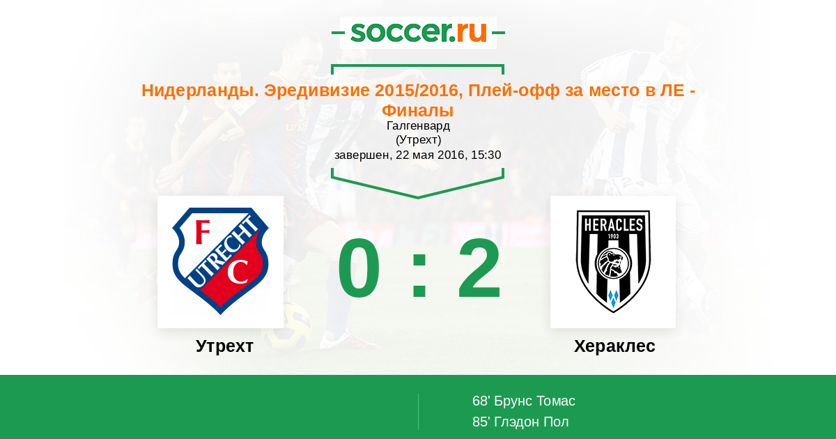 Протокол матча Утрехт против Хераклес
