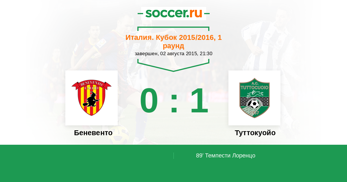 Протокол матча Беневенто против Туттокуойо