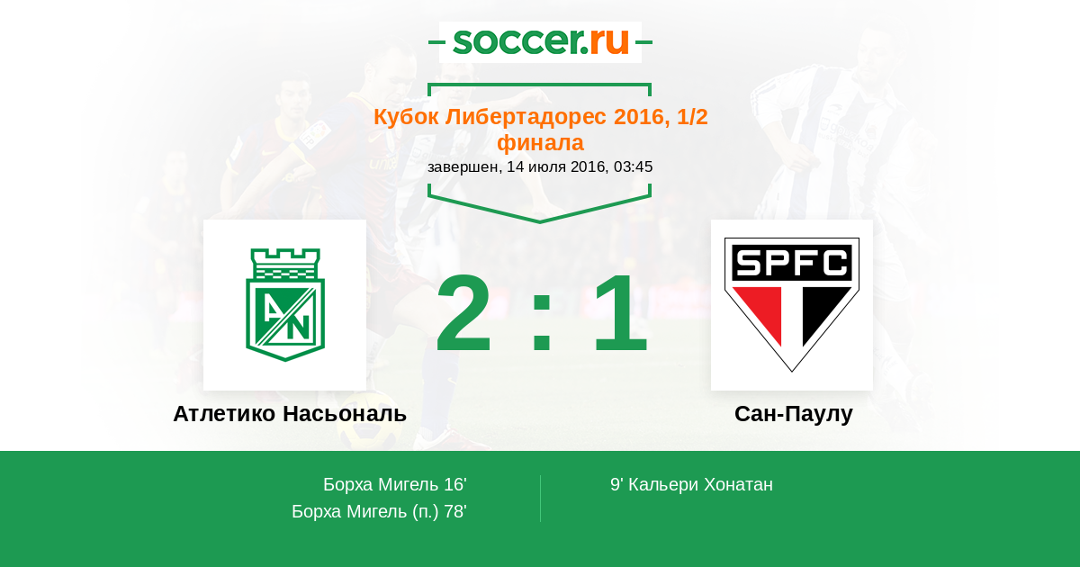 Протокол матча Атлетико Насьональ против Сан-Паулу