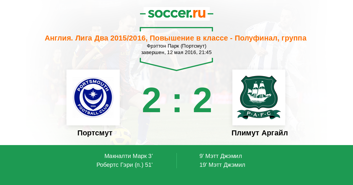 Протокол матча Портсмут против Плимут Аргайл