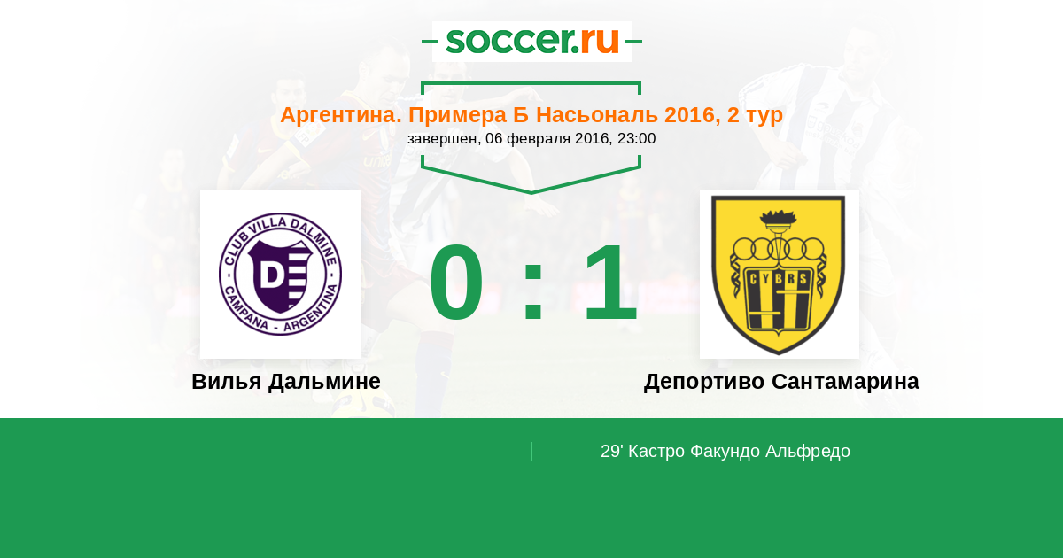 Протокол матча Вилья Дальмине против Депортиво Сантамарина