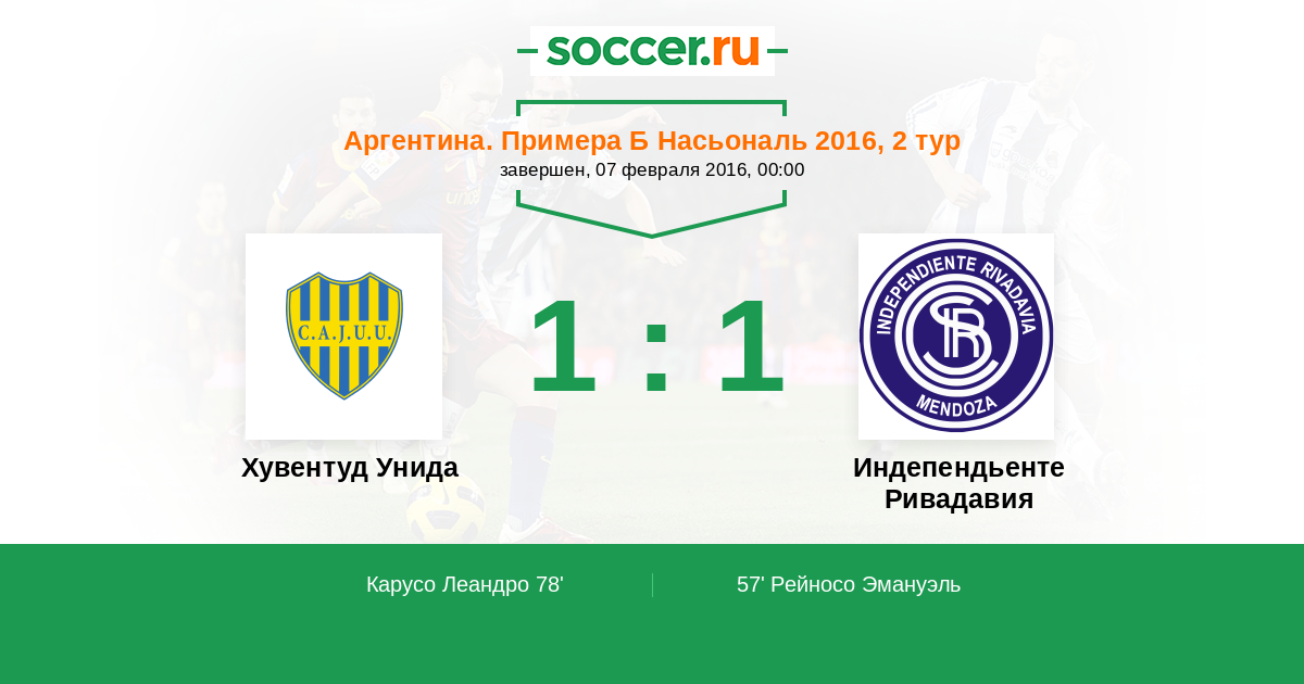 Протокол матча Хувентуд Унида против Индепендьенте Ривадавия
