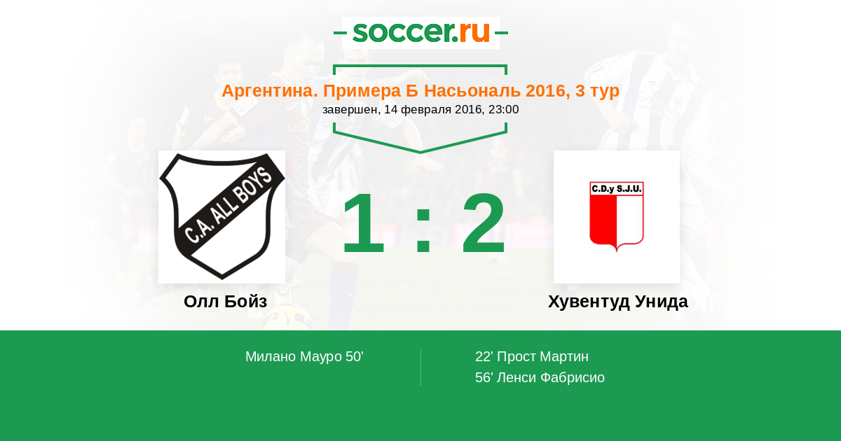 Протокол матча Олл Бойз против Хувентуд Унида