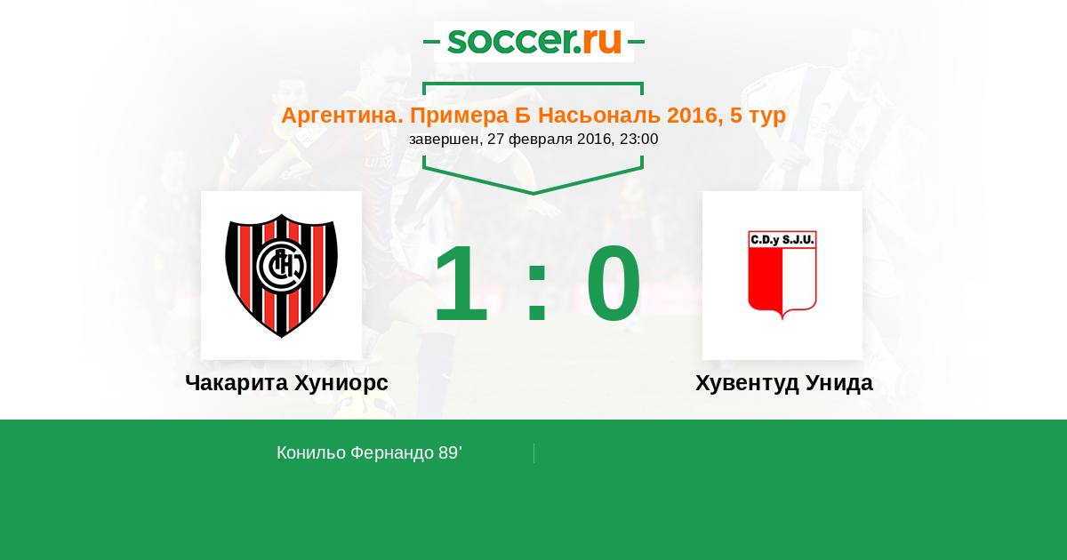 Протокол матча Чакарита Хуниорс против Хувентуд Унида