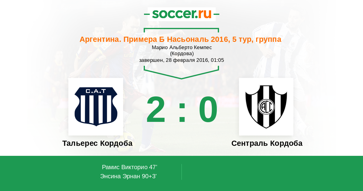 Протокол матча Тальерес Кордоба против Сентраль Кордоба