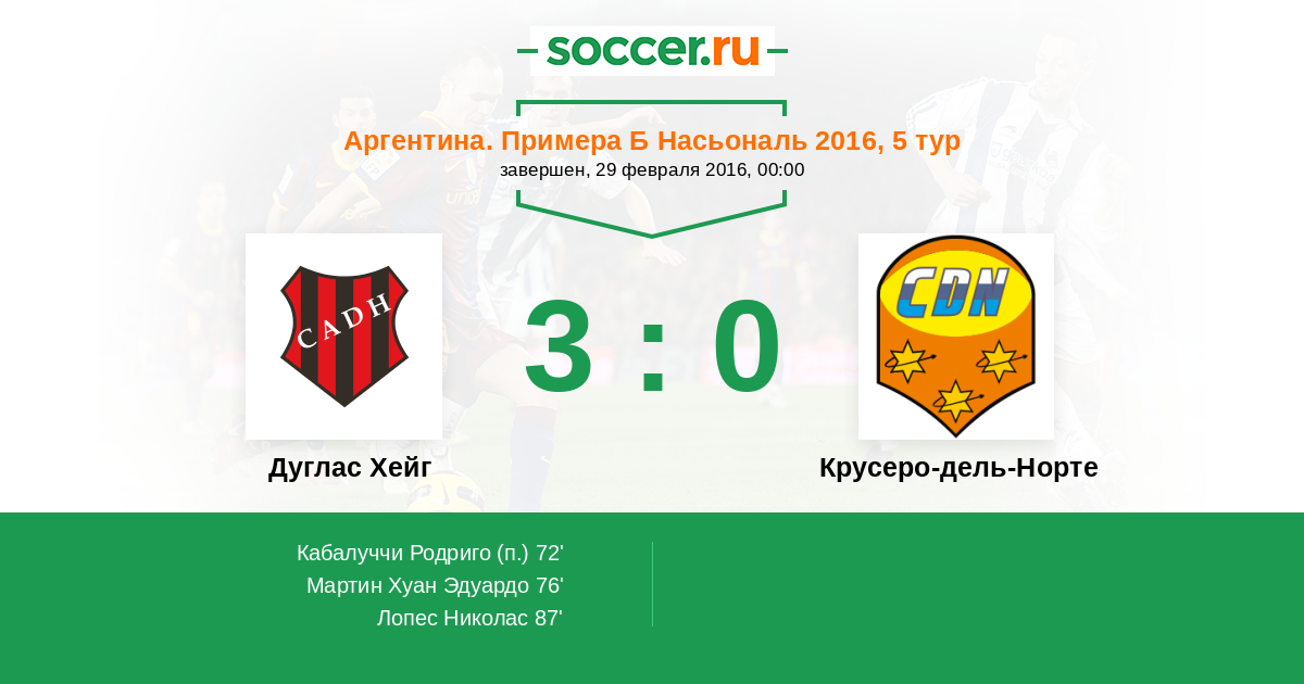 Протокол матча Дуглас Хейг против Крусеро-дель-Норте