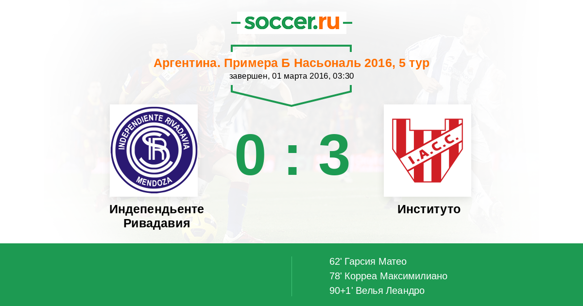 Протокол матча Индепендьенте Ривадавия против Институто