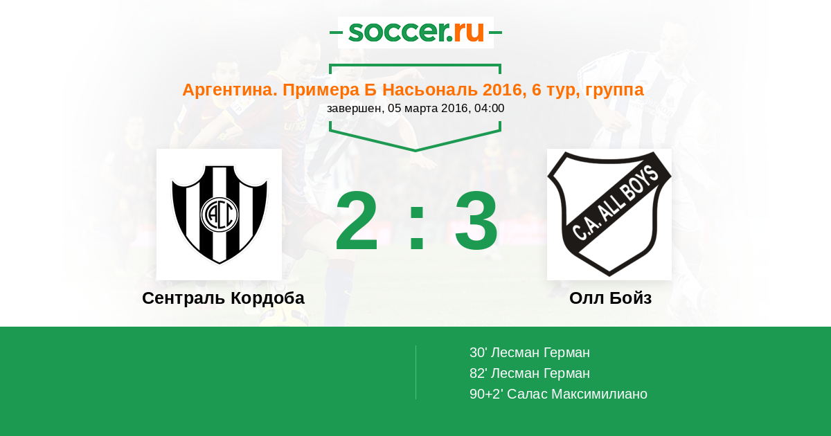 Протокол матча Сентраль Кордоба против Олл Бойз