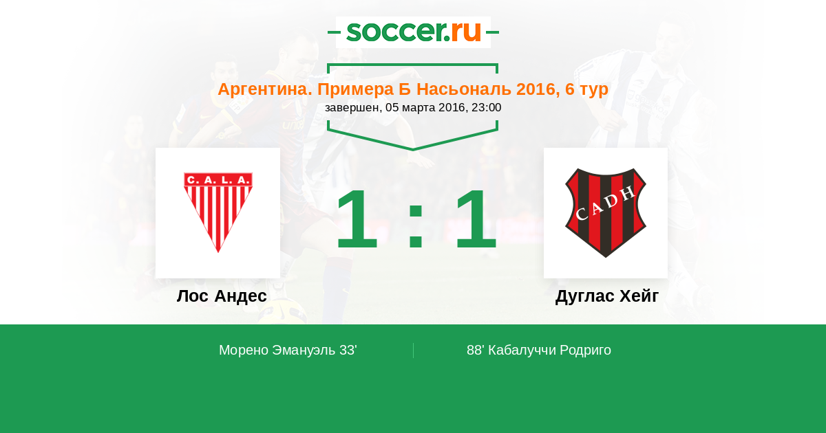 Протокол матча Лос Андес против Дуглас Хейг