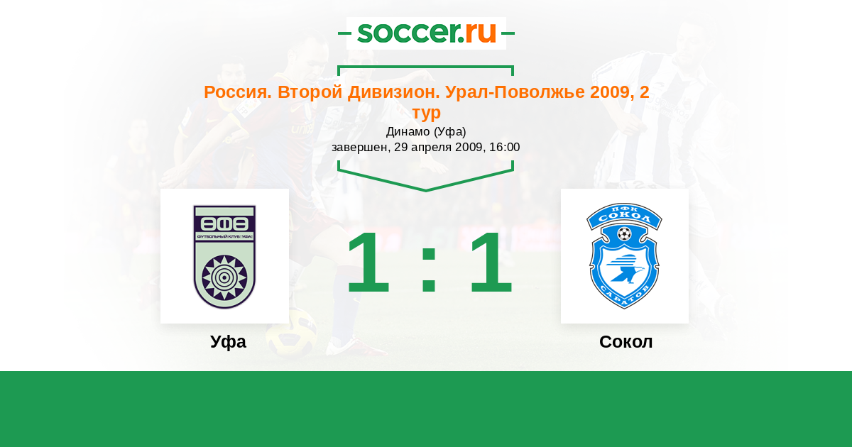 Россия. Вторая лига. Группа 4 08.08.2009 Сокол Логотип футбольный клуб Сокол (Саратов) 1:1 Логотип футбольный клуб Уфа Уфа