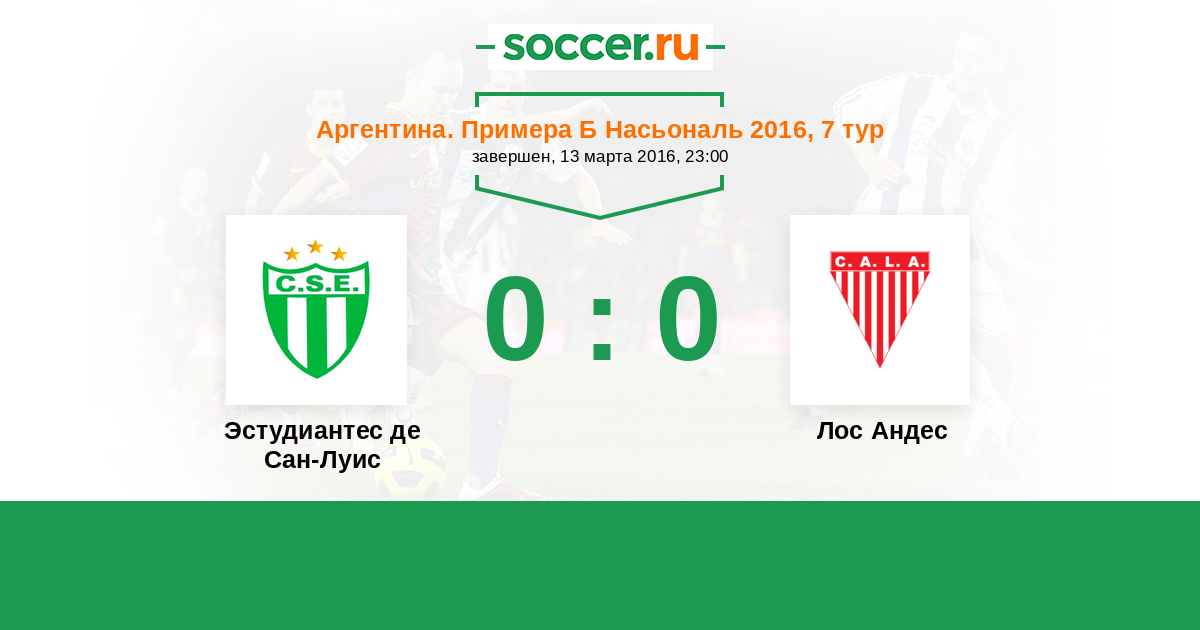 Протокол матча Эстудиантес де Сан-Луис против Лос Андес