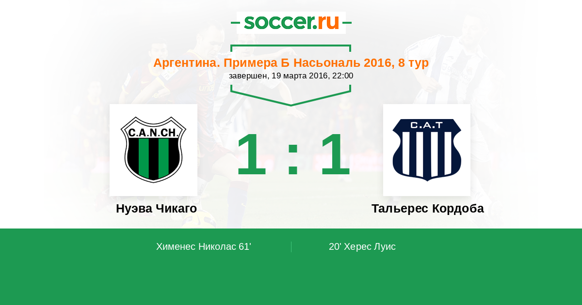 Протокол матча Нуэва Чикаго против Тальерес Кордоба