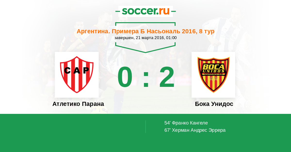Протокол матча Атлетико Парана против Бока Унидос