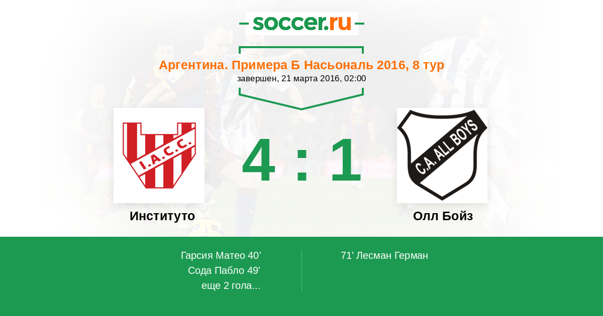 Протокол матча Институто против Олл Бойз