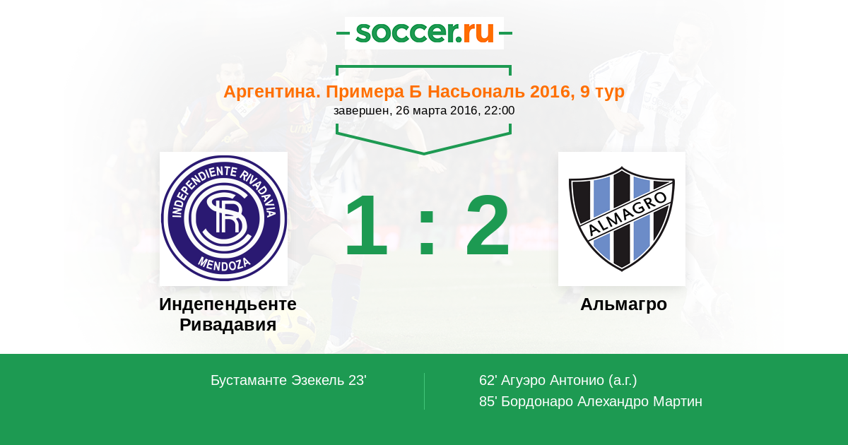 Протокол матча Индепендьенте Ривадавия против Альмагро